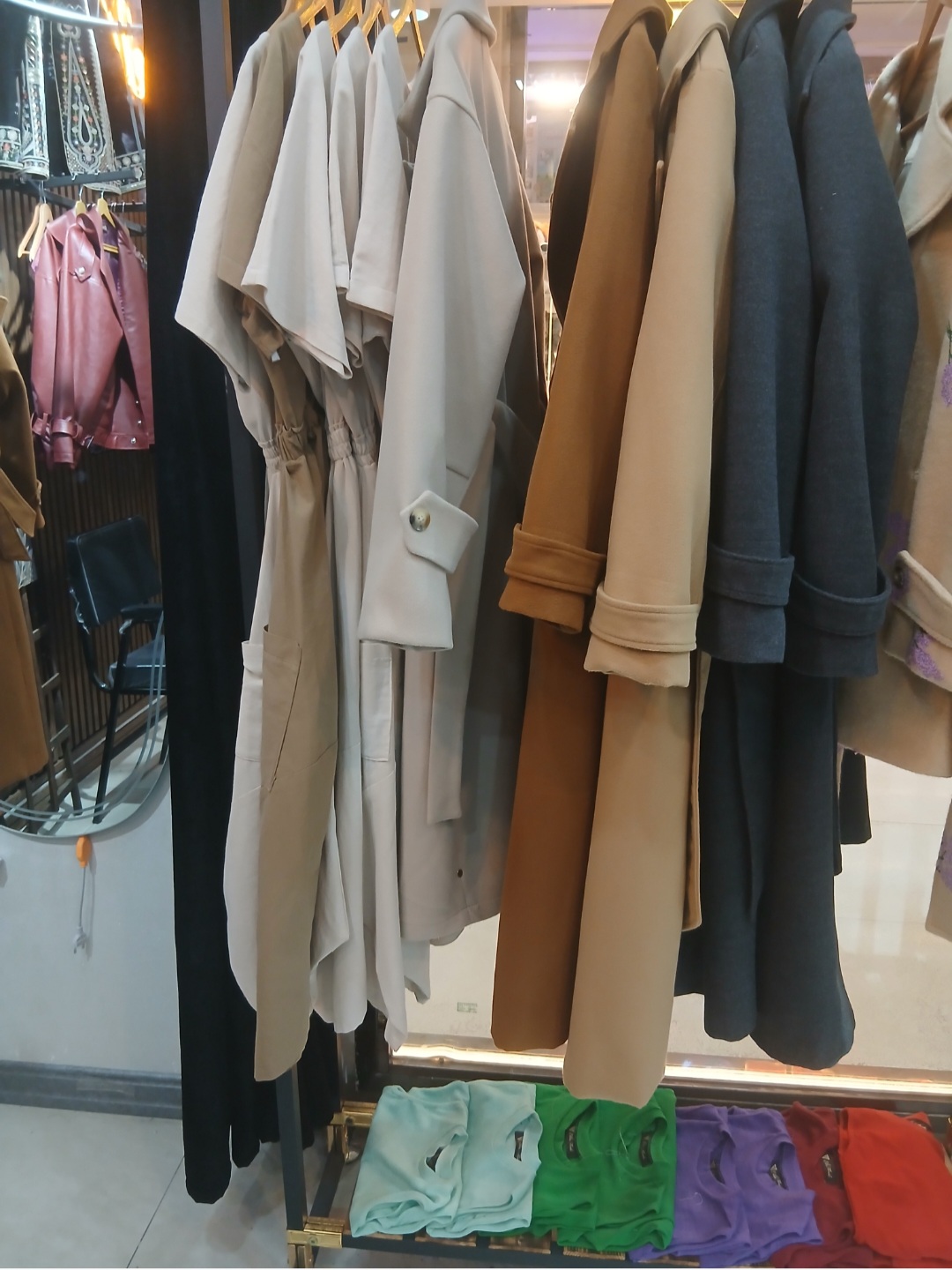 پالتوهای فوتر دو ورودی کوبیده اصلا پرز نمیشن در طرحهای رنگهای بسیار زیبا کرم ،قهوهای، شکلاتی ،طوسی و کرم روشن آستر دار پشت پالتو شنل میخوره و کمربند داره
